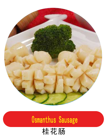 The traditional process: sweet scented osmanthus sausage is a well-balanced Han dishes, which belongs to the Cantonese cuisine. Golden color, soft and tender fresh sweet, liquor flavor, hot and cold food. The pork will be washed mince, add sugar, white wine, salt, soy sauce, stir into the stuffing stand-by. The casings clean, poured into the processed meat stuffing, with bamboo needle pierced through the intestinal around, and then hot water wash clean, then the intestinal hung on the iron furnace roast cooked.