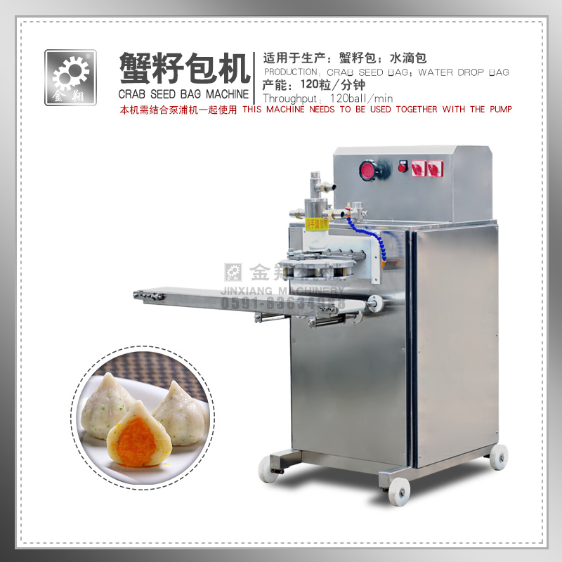 This product is the introduction of Taiwan core technology, uses the stainless steel manufacture, small size, power and easy to operate etc., is the best choice for small and medium-sized food enterprises. This product can be crab roe, crab roe, crab small peach seed bag production.