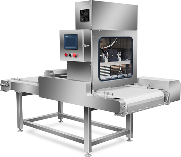 ●This machine is suitable for cutting, cutting, cutting and so on in food processing enterprises, continuous production lines. It is generally used in combination with steam line or other conveying lines. It is often used in cutting and slicing of production lines of fish tofu, crab steak, fish stick and other products. It adopts man-machine interface, and the length of cutting can be adjusted arbitrarily.