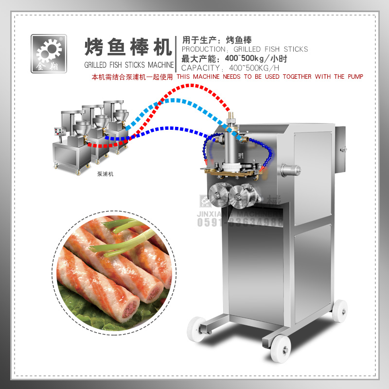 The machine is made of quality stainless steel, consistent with international food hygiene standard, introducing newest technologies from Taiwan. With a strict design, it's designed reasonably. With a design of double rolling knives, it can produce new-type BBQ fish sticks.
