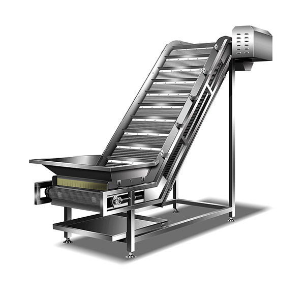 ◆入料口承接水煮线或水冷却槽,经提升机提升后进行风冷,出料后可以对接输送带等传输进入速冻库;