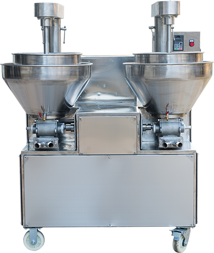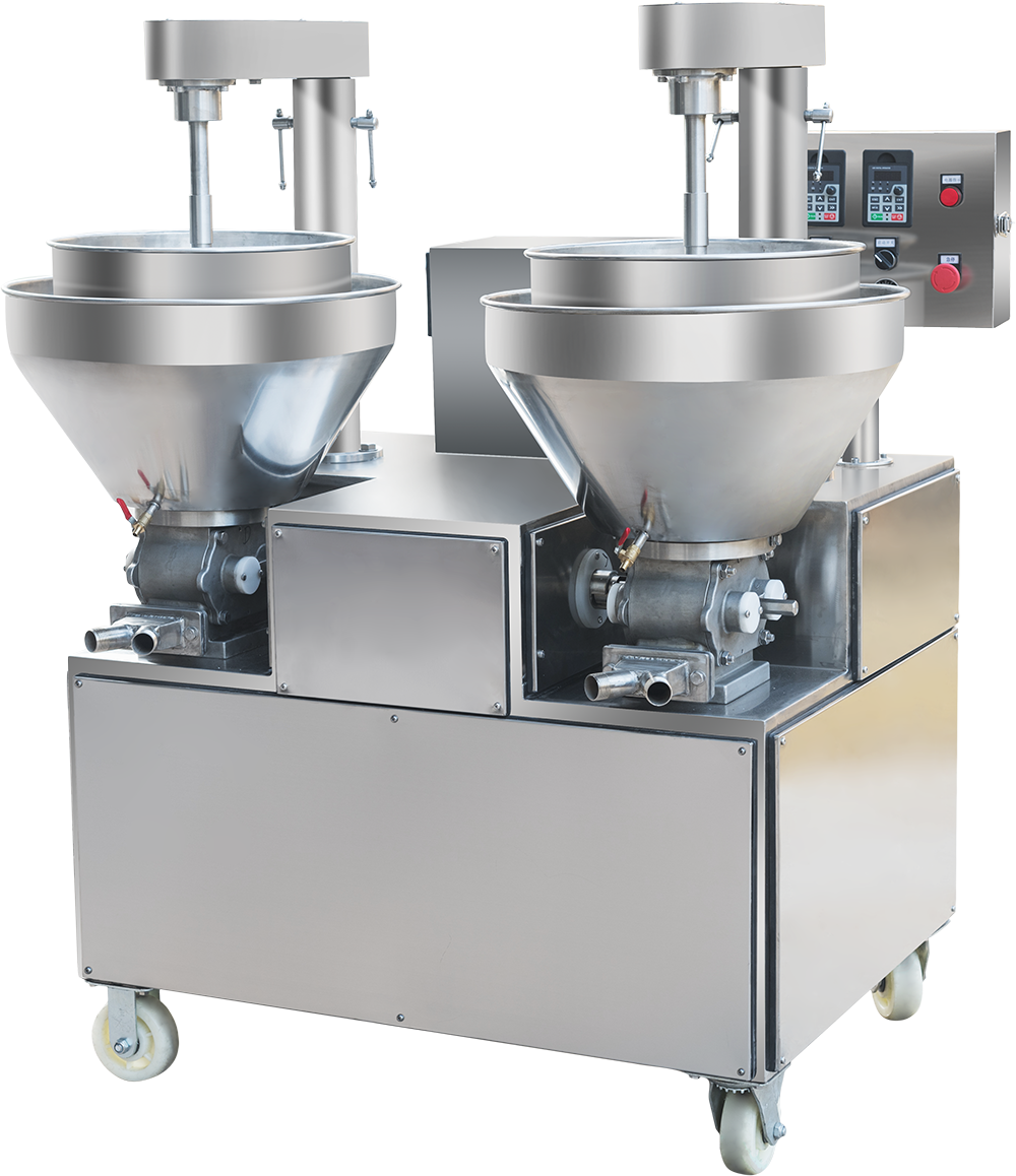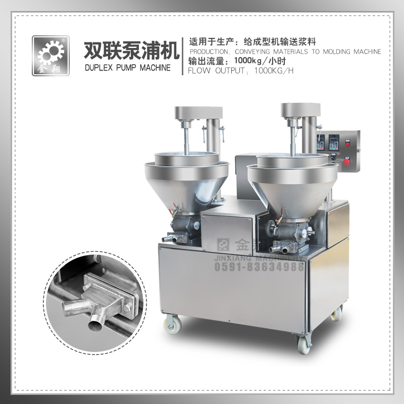 ◎本产品是新一代双联泵浦机,采用双变频调速控制,是在传统的泵浦机基础上研发制造而成的,主要用于火锅料成型机灌注浆料,泵体为齿轮挤料,外体设有减压螺栓以便微调压力。整机采用不锈钢制造,结合合理,运行平稳,效率高,便于操作、清洗。