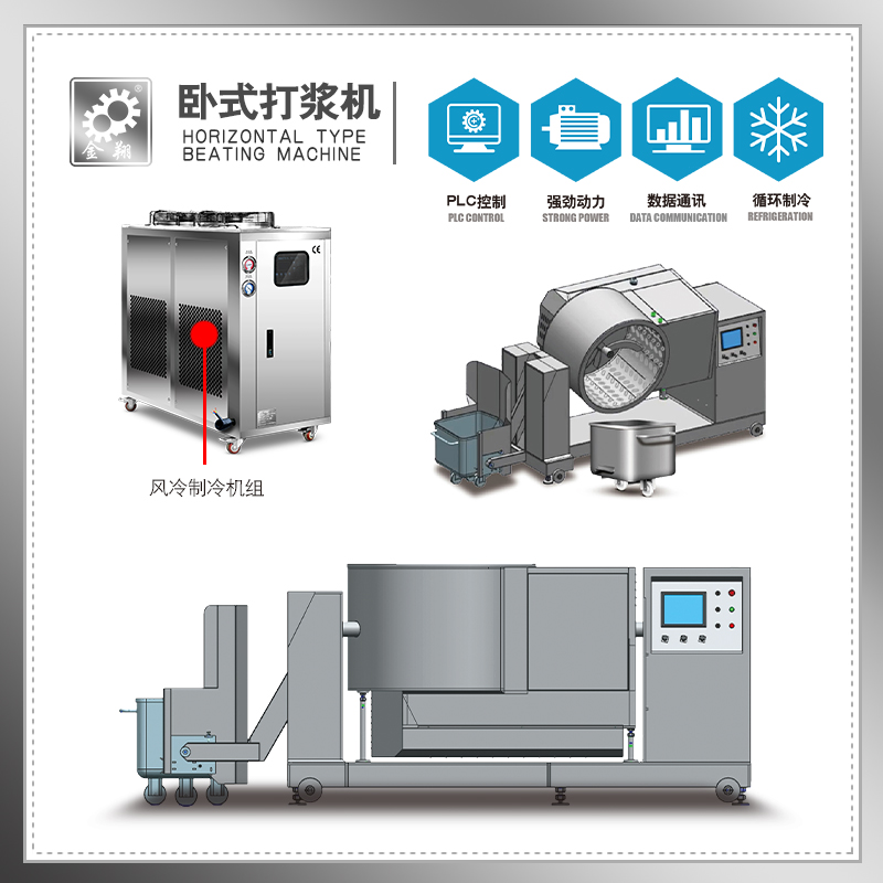<section style="margin: 0px 0px 24px; padding: 0px; outline: 0px; text-align: justify; color: rgba(0, 0, 0, 0.9); line-height: normal; letter-spacing: 0.54px; font-family: system-ui, -apple-system, BlinkMacSystemFont, "Helvetica Neue", "PingFang SC", "Hiragino Sans GB", "Microsoft YaHei UI", "Microsoft YaHei", Arial, sans-serif; font-size: 17px; white-space: normal; max-width: 100%; box-sizing: border-box !important; overflow-wrap: break-word;">This product adopts a SUS304 stainless steel shell as a whole, with a 16 thick inner core bolt for the base frame material. The shell is welded with 16 thick steel plates, and the material barrel is double-layered; Polyurethane foam filling insulation mode ensures that the temperature of the slurry in the barrel does not easily rise, resulting in a better taste effect of the slurry produced. It can be used for various product slurries, fish products, and meat products, and is equipped with a 55kw heavy-duty frequency converter for speed regulation; The hydraulic lifting automatic feeding and discharging function is simple in operation, convenient in use, reasonable in design, safe in job security, and beautiful in appearance. Various specifications of beaters can be customized according to user needs.